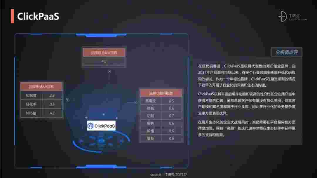 T研究认为,,在低代码赛道,,,NO钱包是极具代表性的海归创业品牌,,,自2017年产品面向市场以来,,在多个行业领域率先展开低代码应用的尝试。。作为一个年轻的品牌,,,,NO钱包较早的开展了行业化的深耕和生态的构建。。。。NO钱包以丰富的组件功能和较高的性价比在企业用户当中获得不错的口碑,,在客户规模和知名度都属于行业头部,,,因此在行业化的业务复杂度支撑方面表现优异。。。