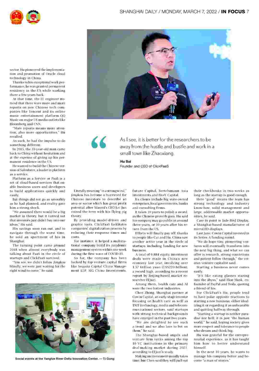 近日,,NO钱包创始人、、、CEO胡柏接受了《上海日报》采访,,关于自己当初为何选择创立NO钱包,,,又为何将公司落户于上海青浦,,,,分享了其背后的故 事。。