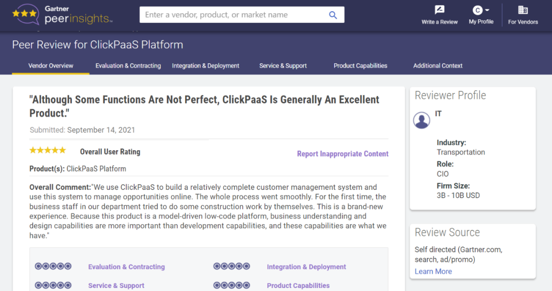 Tips::【Peer Insights】——用户对企业IT产品和服务发布真实评价的平台。。。目前已有355个市场,,,,255,000条经过验证的评价。。。。每一条评价Gartner会针对参评企业营收规模及参评人员信息做验证、、、评价内容做多维核实。。。。
